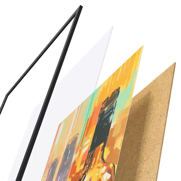 Plakat koosneb raamist, pleksiklaasist, trükitud pildist ja puitlaastplaadist alusplaadist. Tänu tagaküljel olevatele kinnitustele saab plakati kohe seinale riputada.