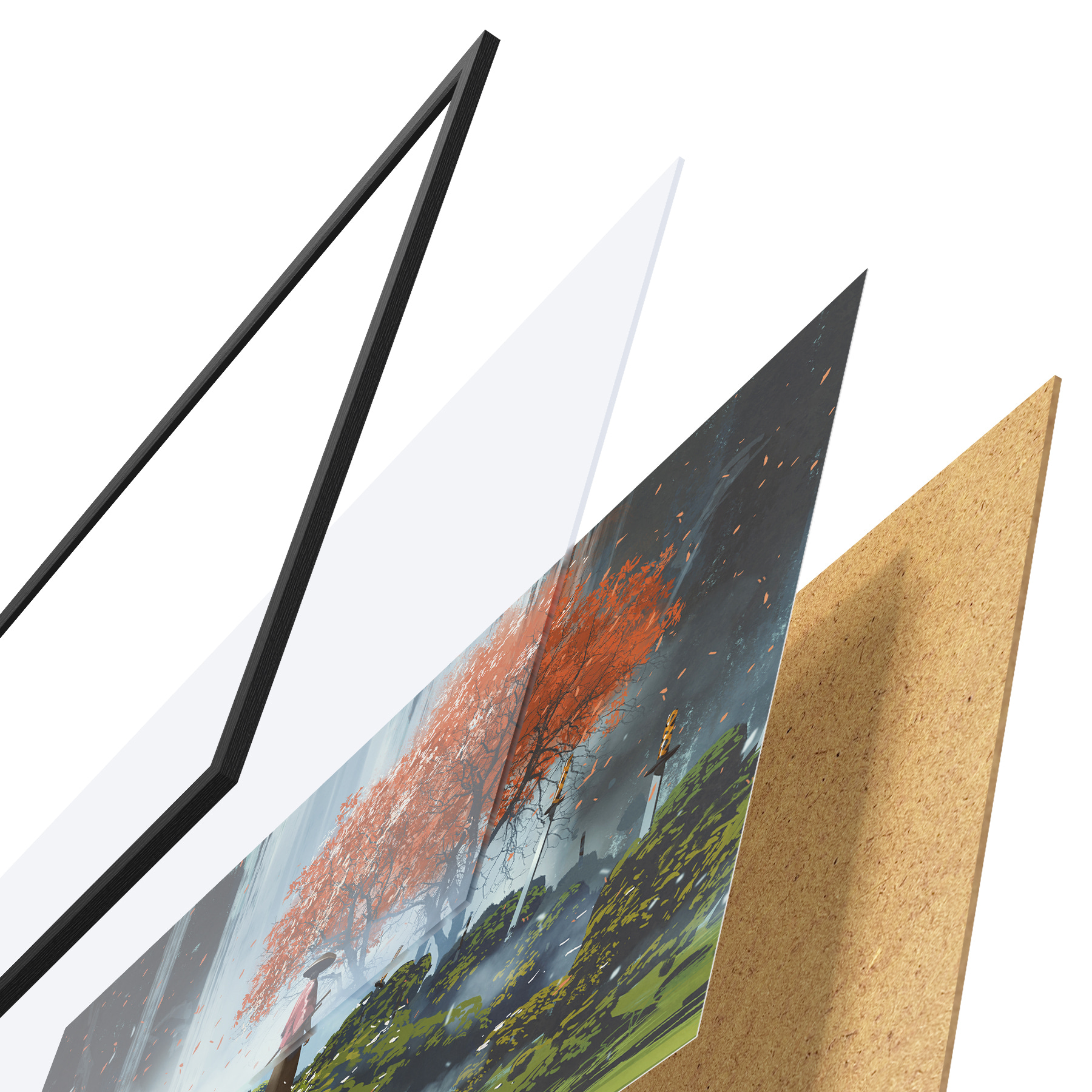 Plakat koosneb raamist, pleksiklaasist, trükitud pildist ja puitlaastplaadist alusplaadist. Tänu tagaküljel olevatele kinnitustele saab plakati kohe seinale riputada.