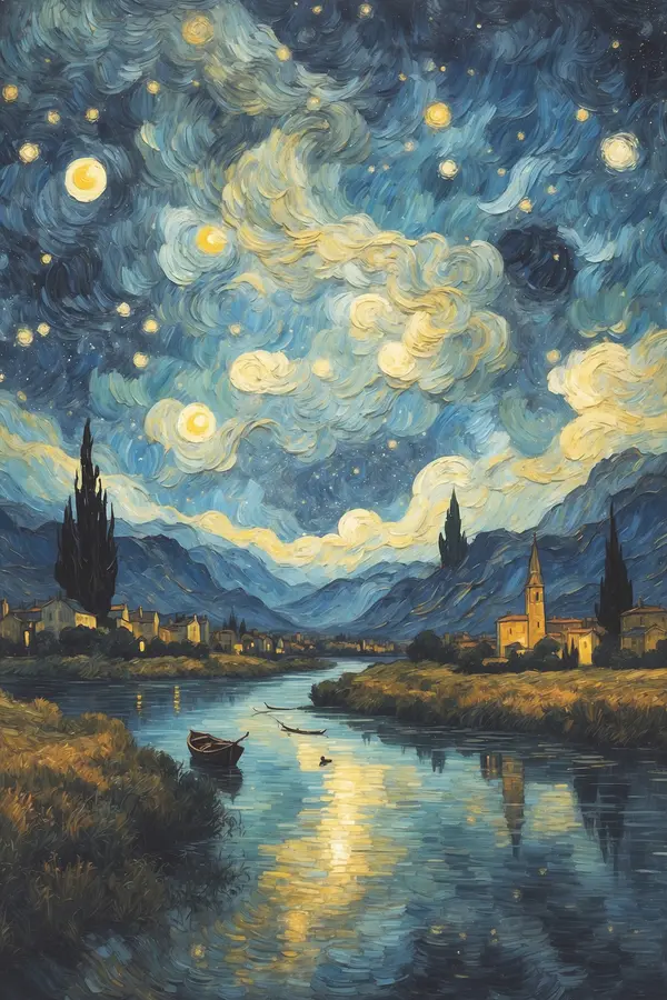 Poster Täheline öö rahuliku vee kohal Nr f37123