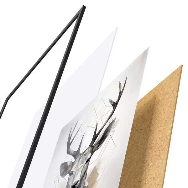 Plakat koosneb raamist, pleksiklaasist, trükitud pildist ja puitlaastplaadist alusplaadist. Tänu tagaküljel olevatele kinnitustele saab plakati kohe seinale riputada.