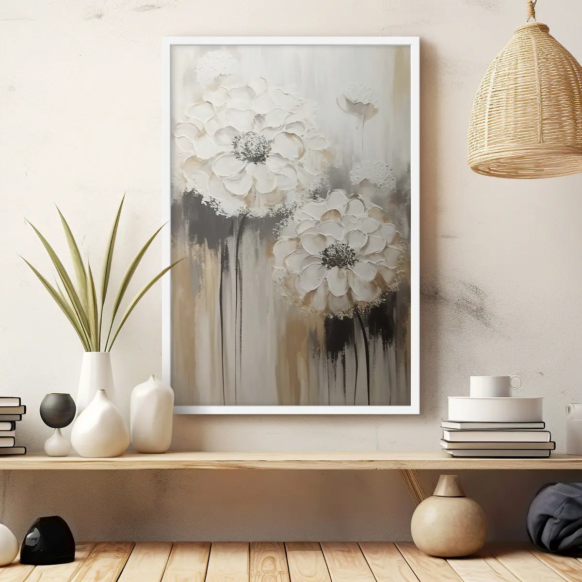 Plakat Elegantsed valged lilled pehmetes toonides f37307