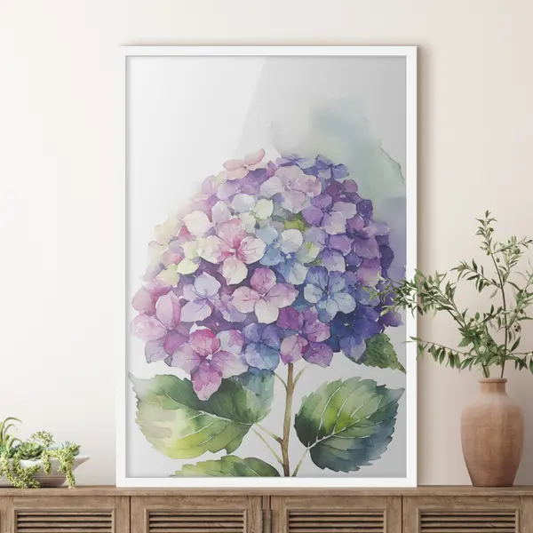 Poster Ere värviline akvarellhortensia õitseb kaunilt Nr f37344