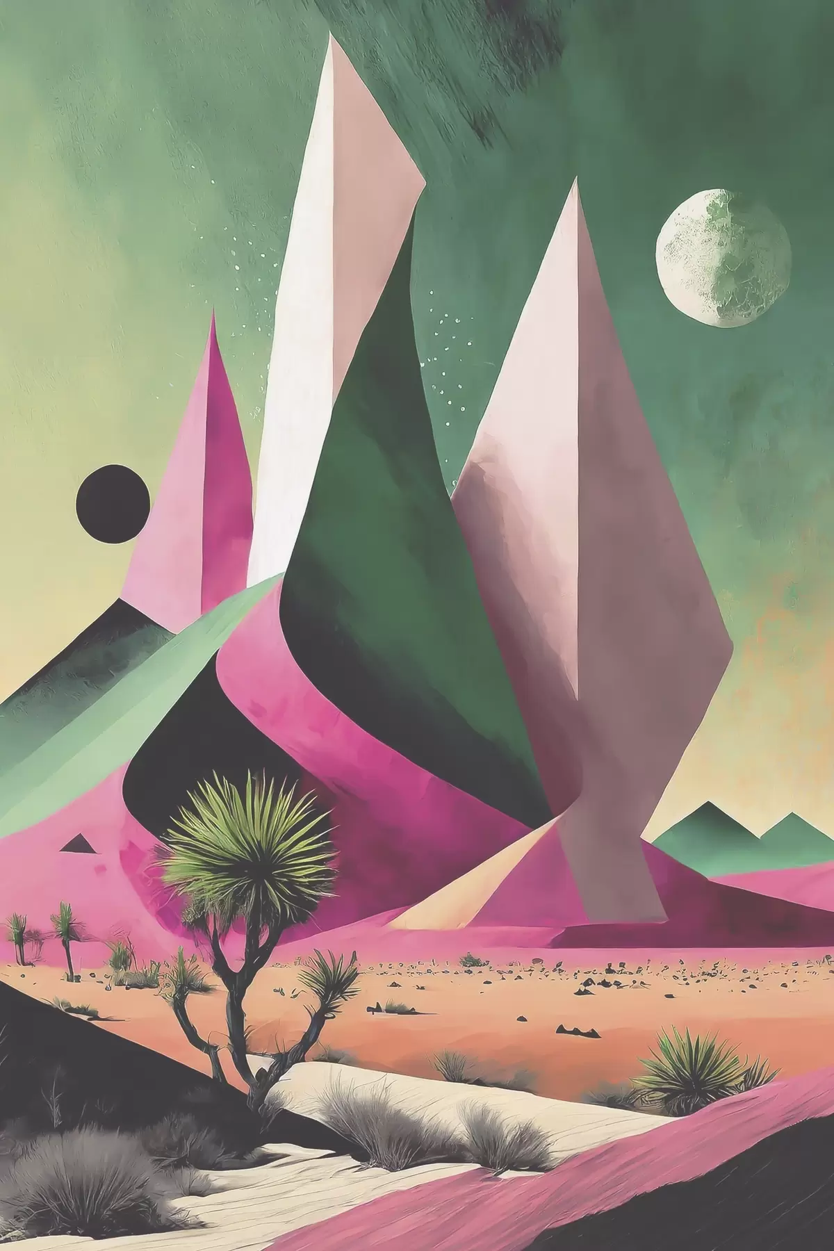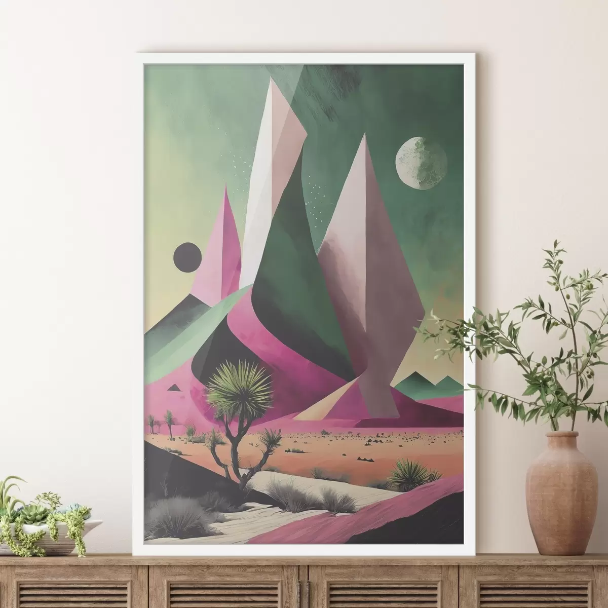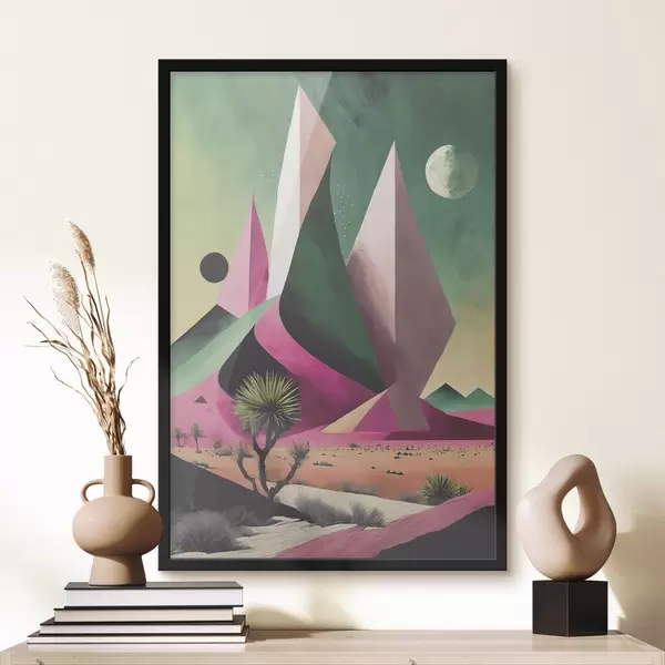 Plakat Puude ja mägedega kõrbemaastik f37360