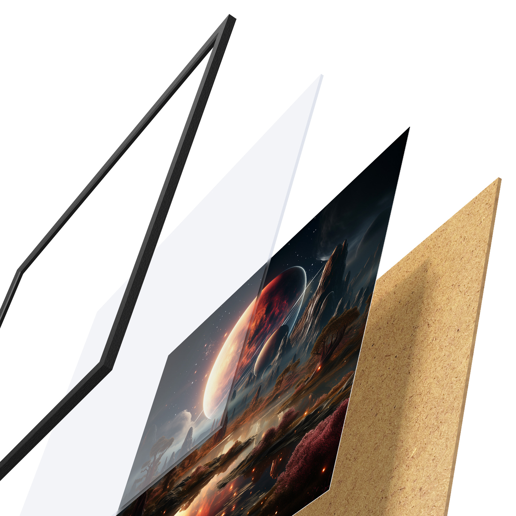 Plakat koosneb raamist, pleksiklaasist, trükitud pildist ja puitlaastplaadist alusplaadist. Tänu tagaküljel olevatele kinnitustele saab plakati kohe seinale riputada.