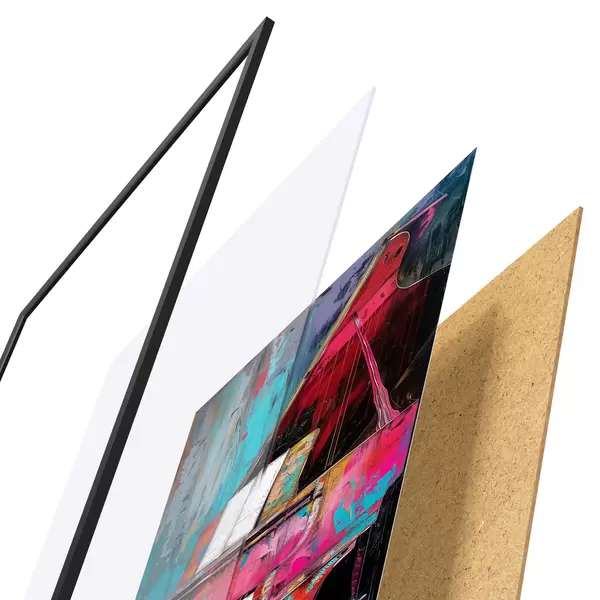 Plakat koosneb raamist, pleksiklaasist, trükitud pildist ja puitlaastplaadist alusplaadist. Tänu tagaküljel olevatele kinnitustele saab plakati kohe seinale riputada.