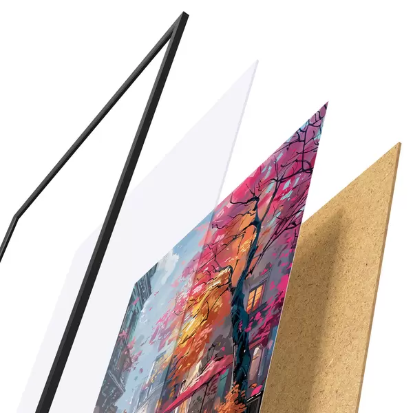 Plakat koosneb raamist, pleksiklaasist, trükitud pildist ja puitlaastplaadist alusplaadist. Tänu tagaküljel olevatele kinnitustele saab plakati kohe seinale riputada.