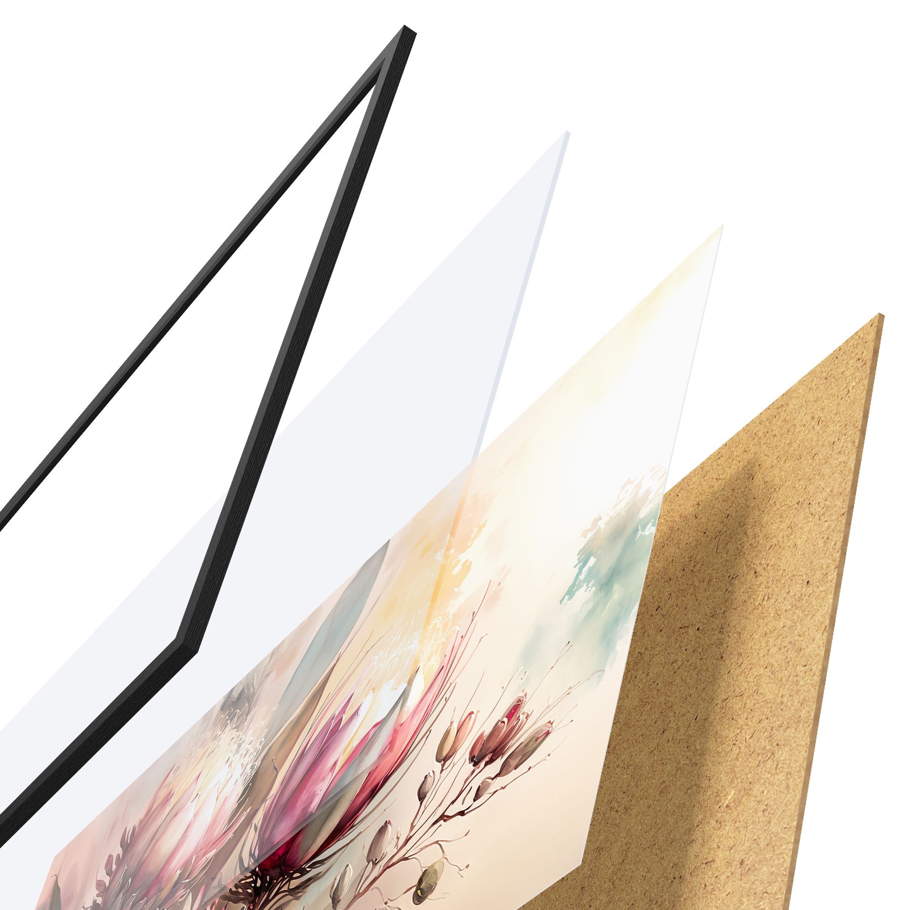 Plakat koosneb raamist, pleksiklaasist, trükitud pildist ja puitlaastplaadist alusplaadist. Tänu tagaküljel olevatele kinnitustele saab plakati kohe seinale riputada.