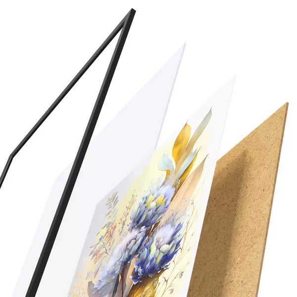 Plakat koosneb raamist, pleksiklaasist, trükitud pildist ja puitlaastplaadist alusplaadist. Tänu tagaküljel olevatele kinnitustele saab plakati kohe seinale riputada.