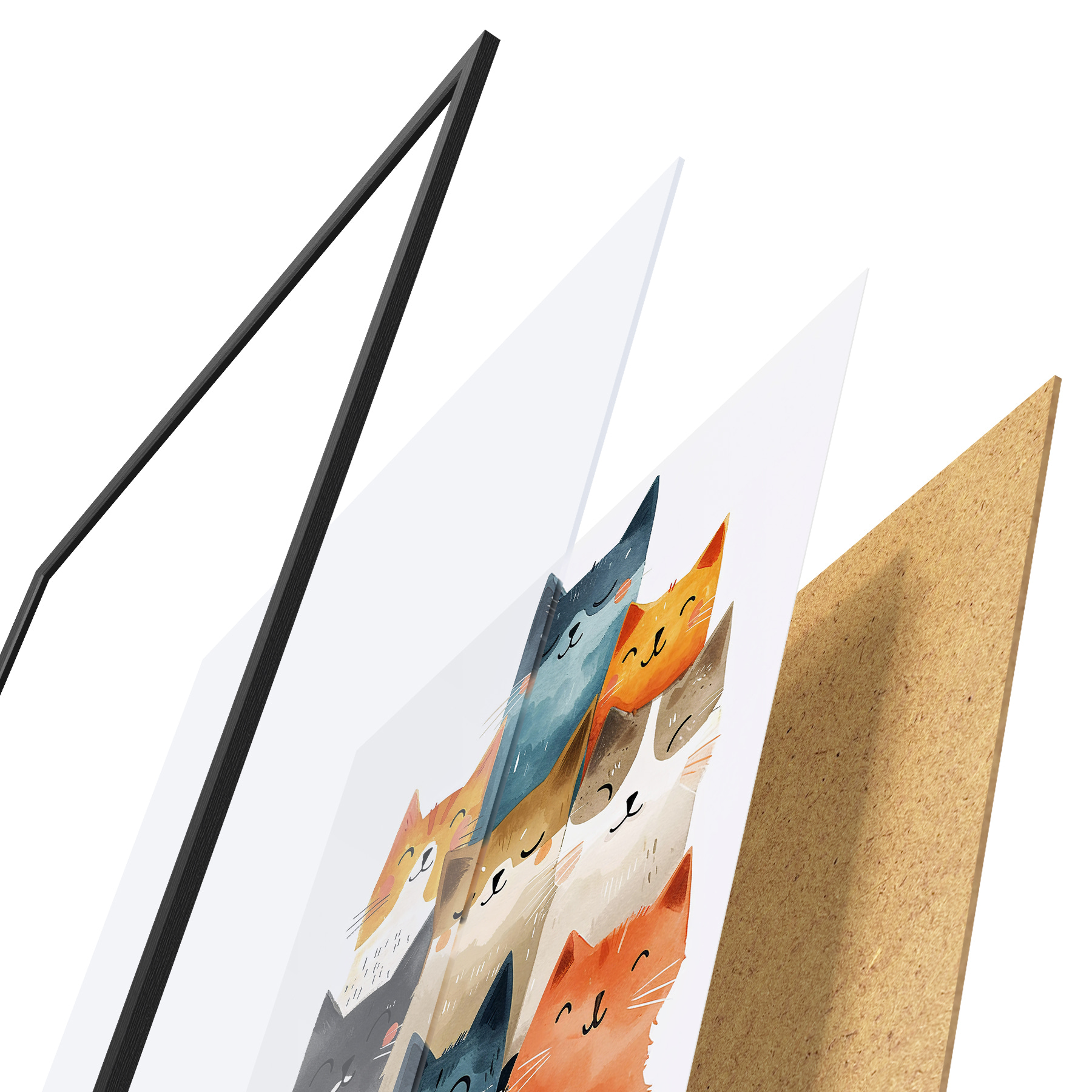 Plakat koosneb raamist, pleksiklaasist, trükitud pildist ja puitlaastplaadist alusplaadist. Tänu tagaküljel olevatele kinnitustele saab plakati kohe seinale riputada.