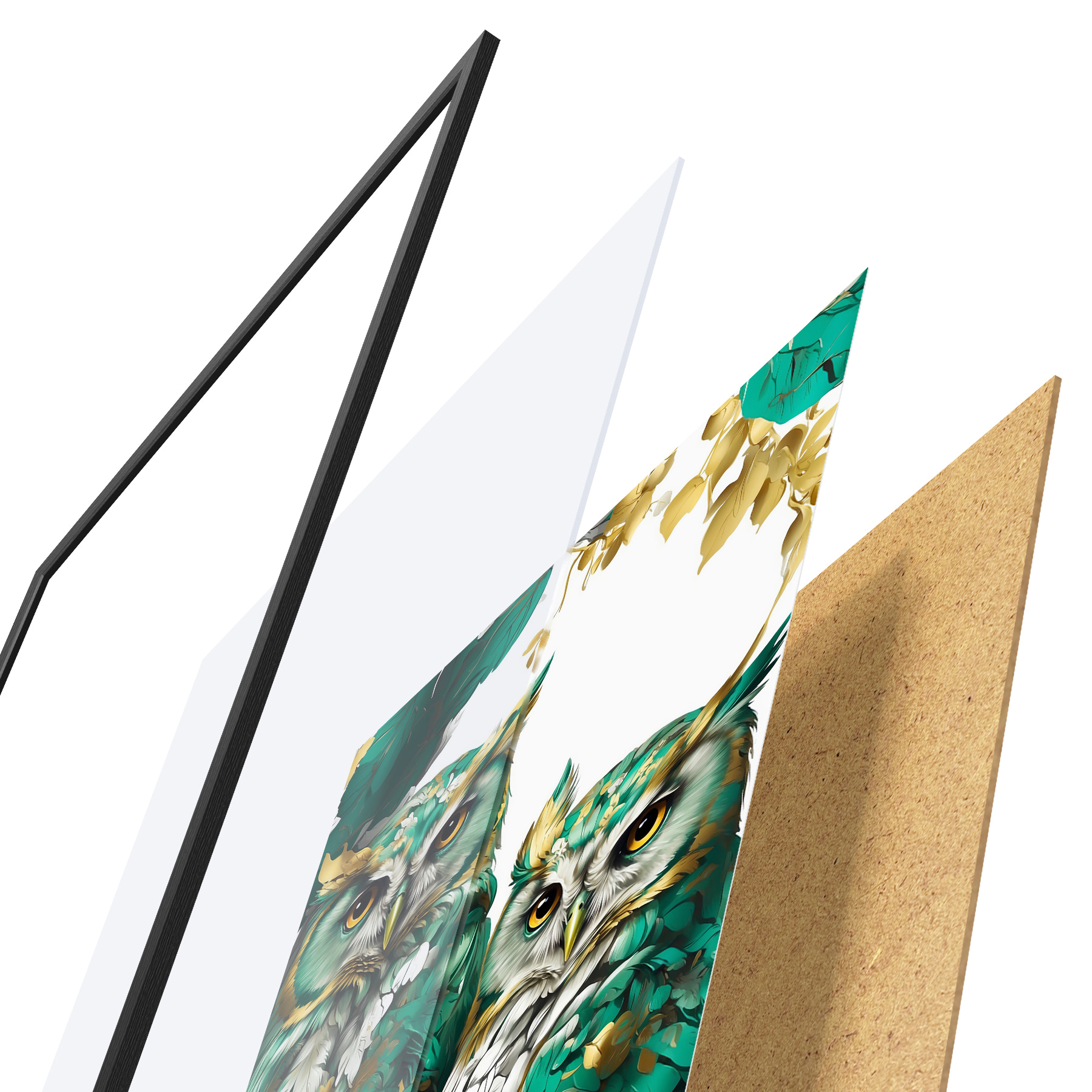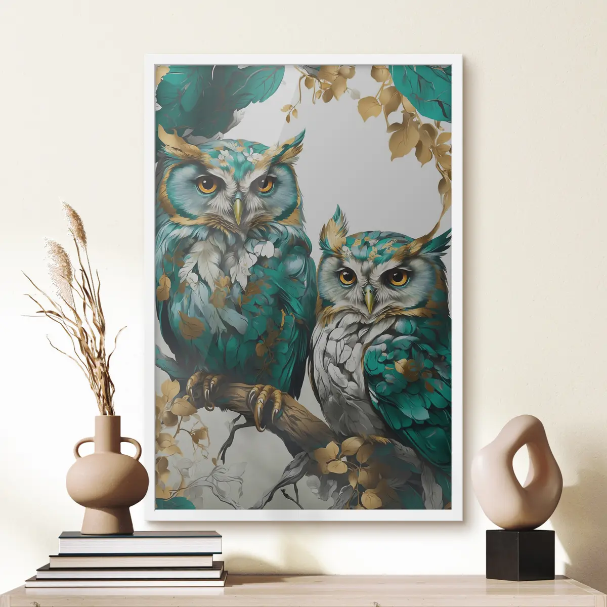 Poster Kaks rohelist öökullid lehtedes Nr f37569