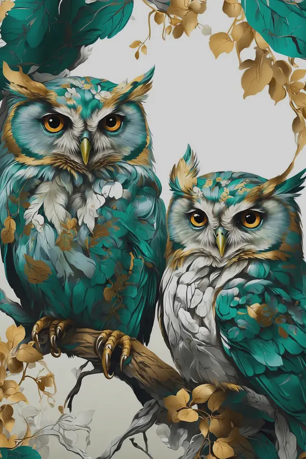 Poster Kaks rohelist öökullid lehtedes Nr f37569