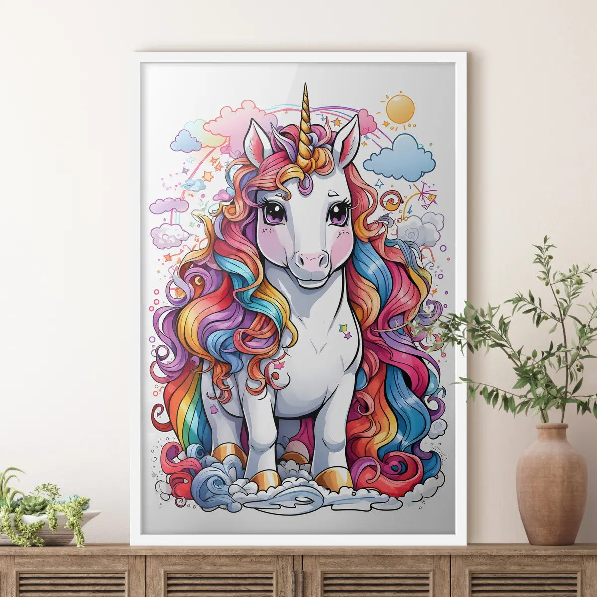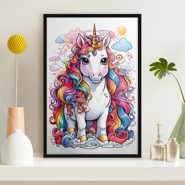Plakat Värvikas ükssarvik unistavate pilvede keskel f37766