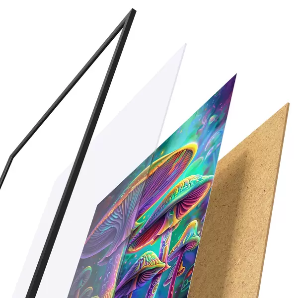 Plakat koosneb raamist, pleksiklaasist, trükitud pildist ja puitlaastplaadist alusplaadist. Tänu tagaküljel olevatele kinnitustele saab plakati kohe seinale riputada.