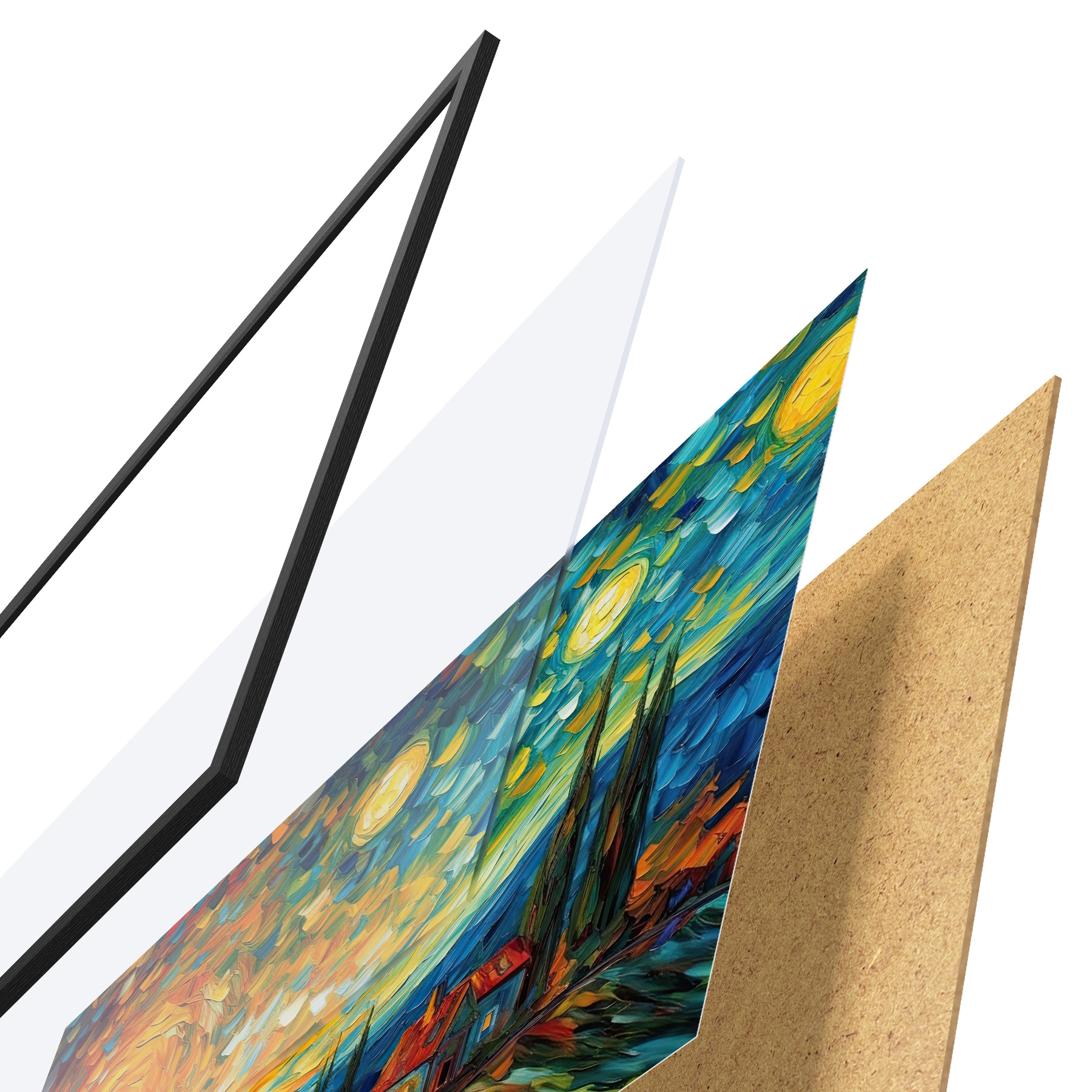 Plakat koosneb raamist, pleksiklaasist, trükitud pildist ja puitlaastplaadist alusplaadist. Tänu tagaküljel olevatele kinnitustele saab plakati kohe seinale riputada.