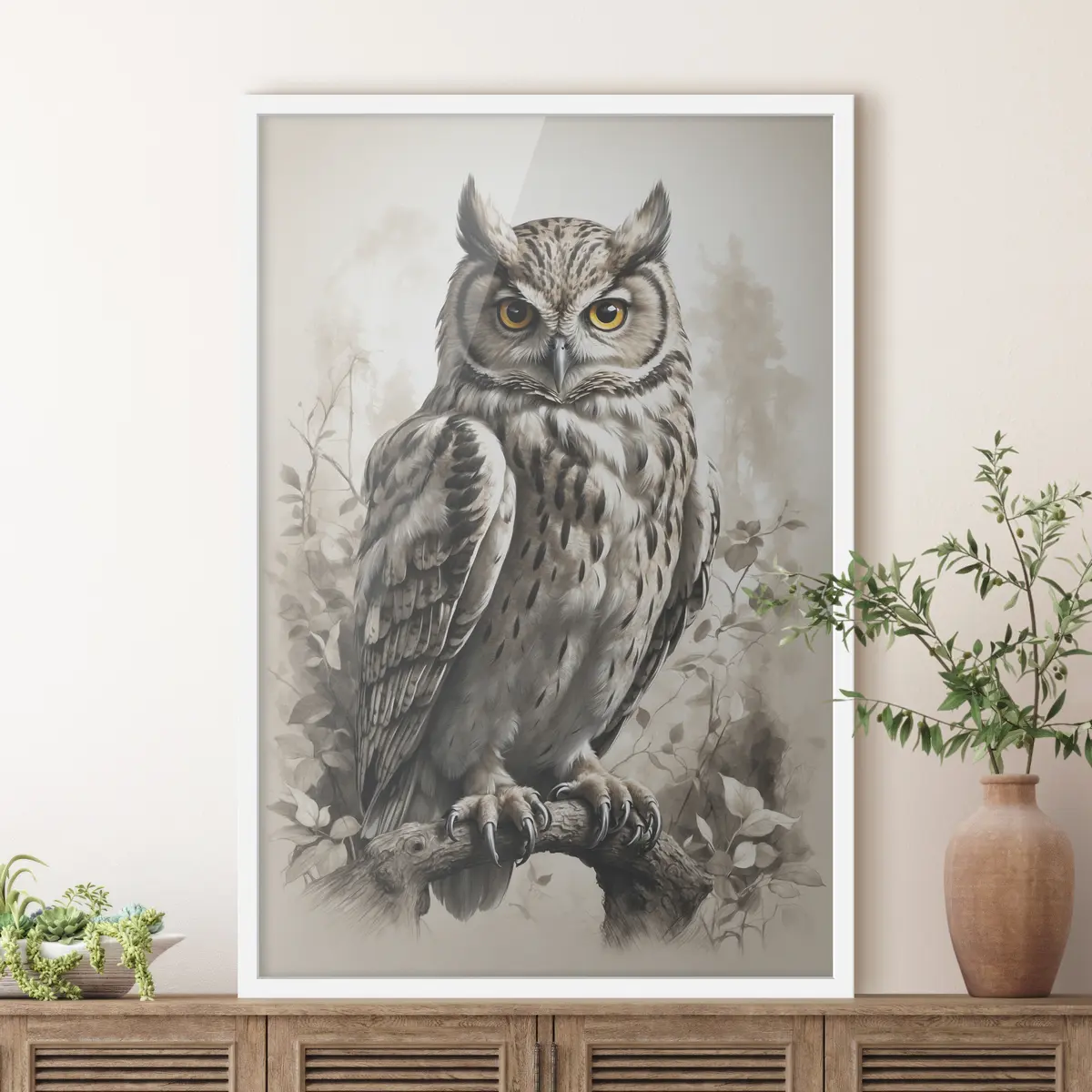 Plakat Öökull mustvalgel taustal f38118