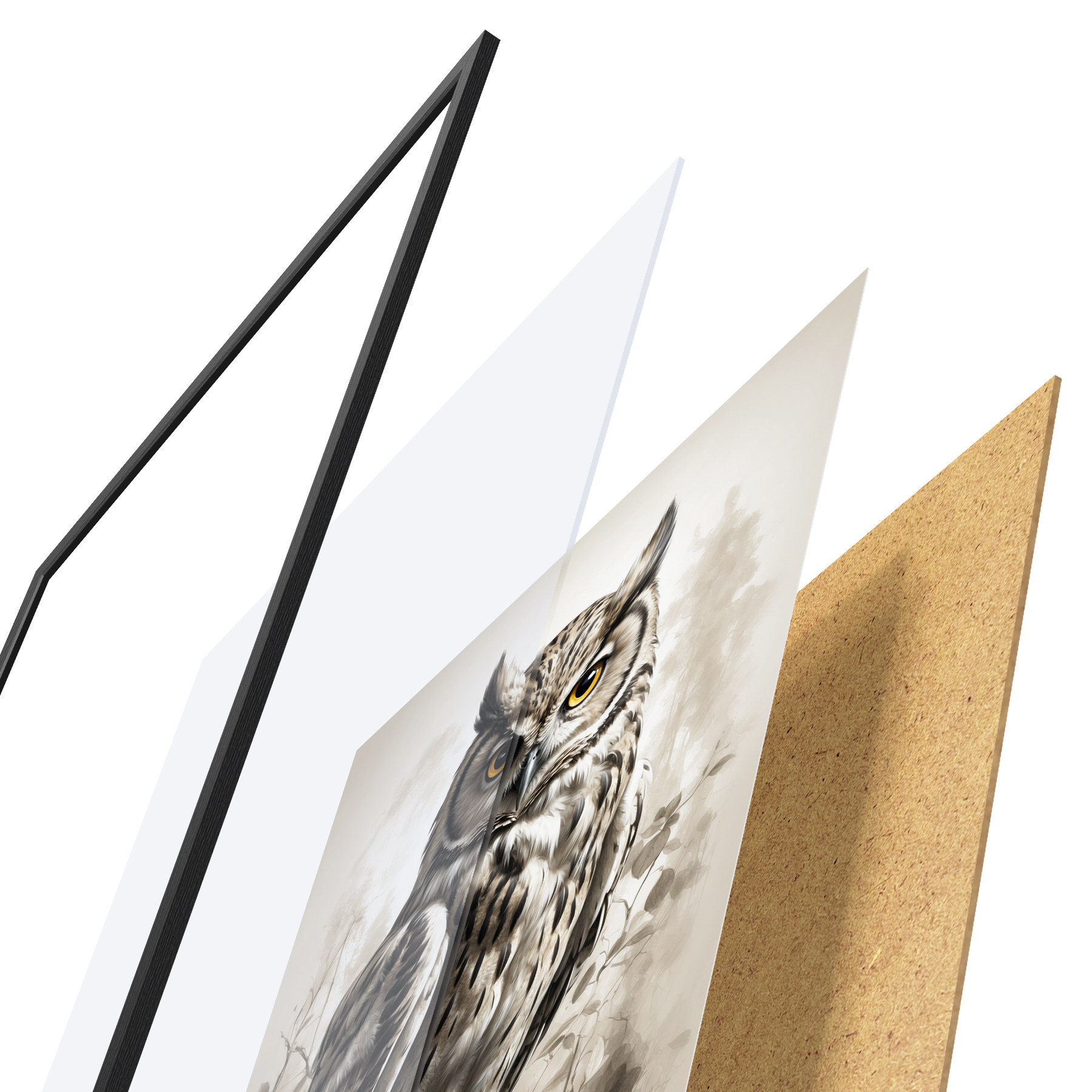 Plakat koosneb raamist, pleksiklaasist, trükitud pildist ja puitlaastplaadist alusplaadist. Tänu tagaküljel olevatele kinnitustele saab plakati kohe seinale riputada.
