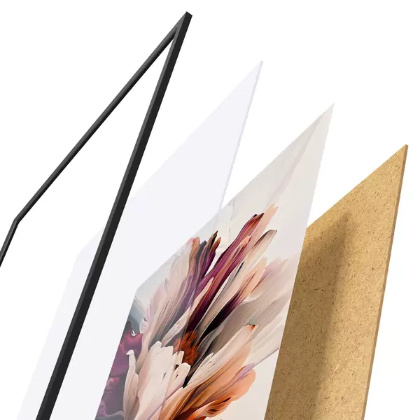 Plakat koosneb raamist, pleksiklaasist, trükitud pildist ja puitlaastplaadist alusplaadist. Tänu tagaküljel olevatele kinnitustele saab plakati kohe seinale riputada.