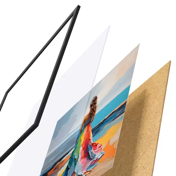 Plakat koosneb raamist, pleksiklaasist, trükitud pildist ja puitlaastplaadist alusplaadist. Tänu tagaküljel olevatele kinnitustele saab plakati kohe seinale riputada.