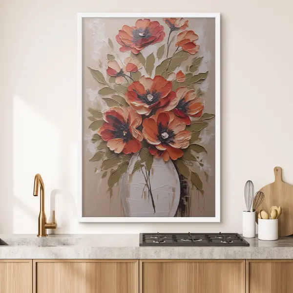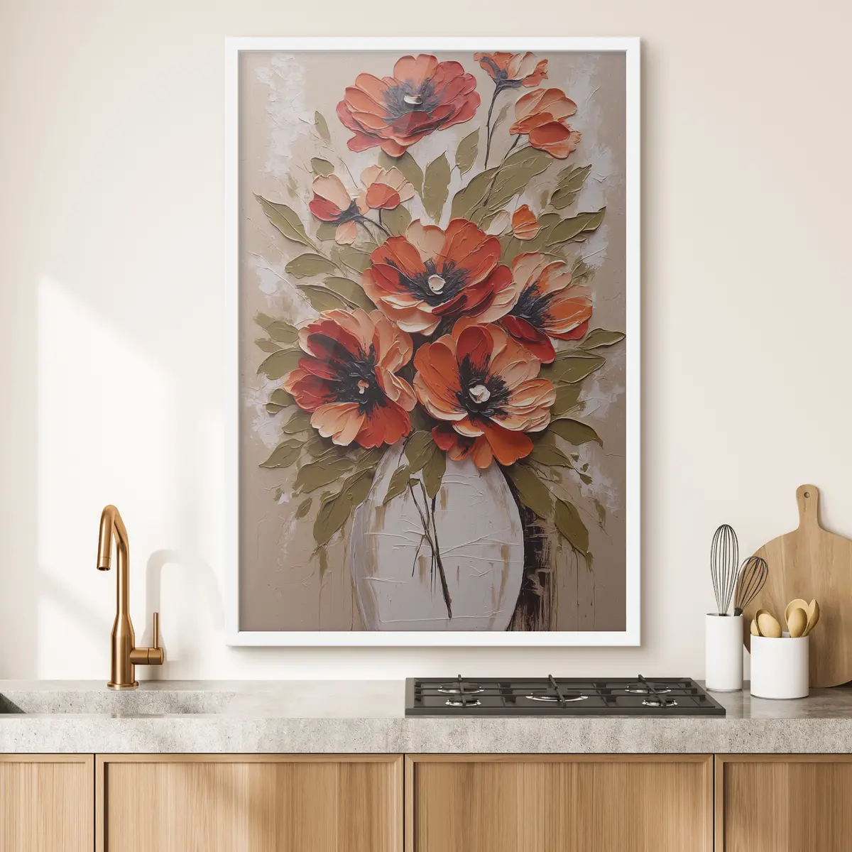 Poster Lilled valges vaasis roosal taustal Nr f38176