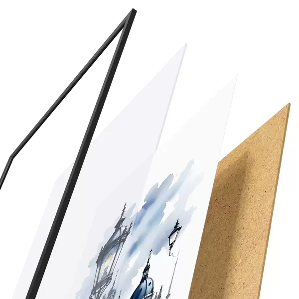 Plakat koosneb raamist, pleksiklaasist, trükitud pildist ja puitlaastplaadist alusplaadist. Tänu tagaküljel olevatele kinnitustele saab plakati kohe seinale riputada.
