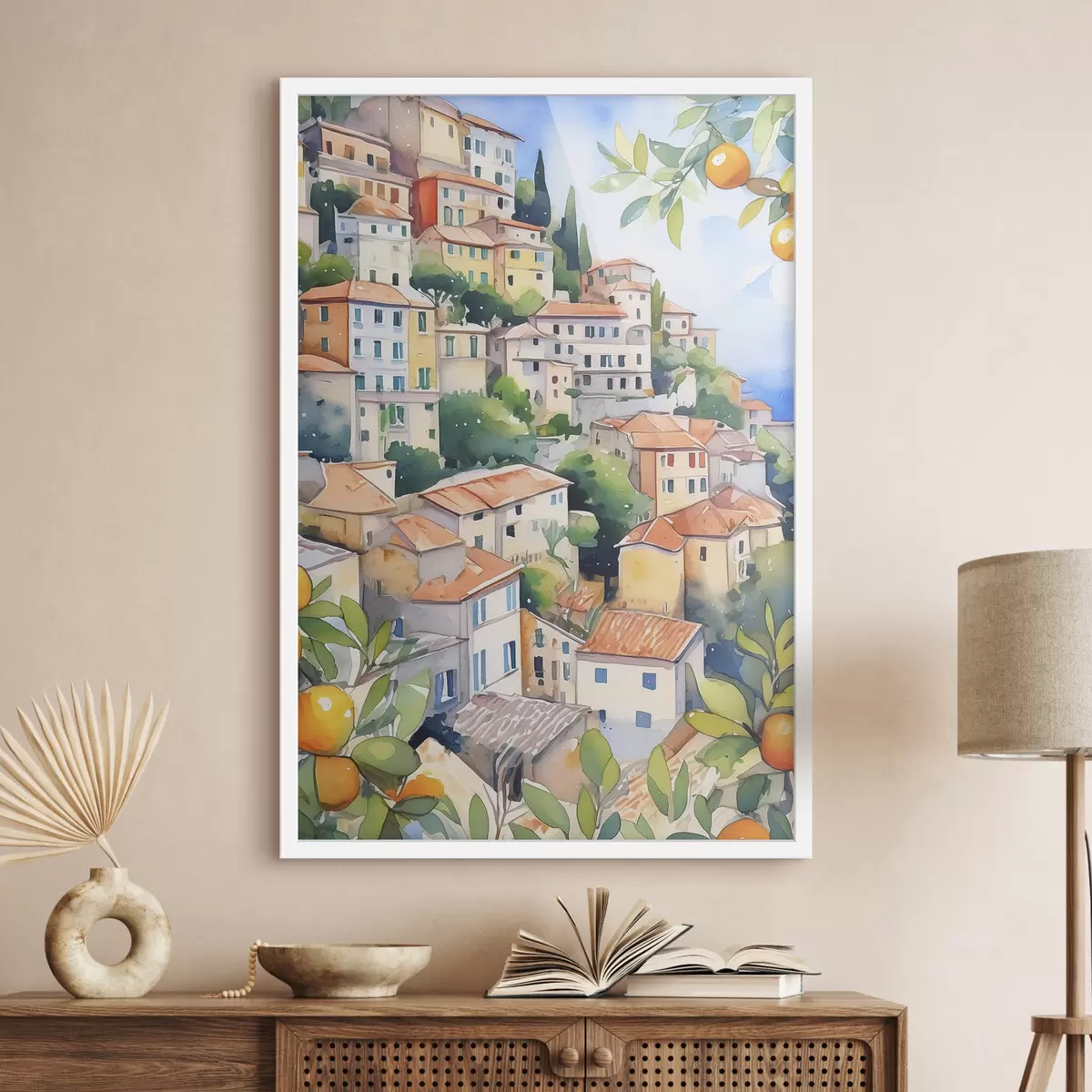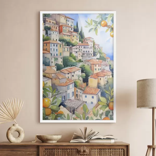 Plakat Vahemere arhitektuur, akvarell, suvi, apelsinid, vanalinn f38396