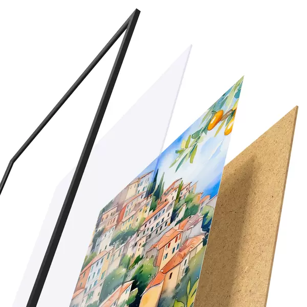 Plakat koosneb raamist, pleksiklaasist, trükitud pildist ja puitlaastplaadist alusplaadist. Tänu tagaküljel olevatele kinnitustele saab plakati kohe seinale riputada.