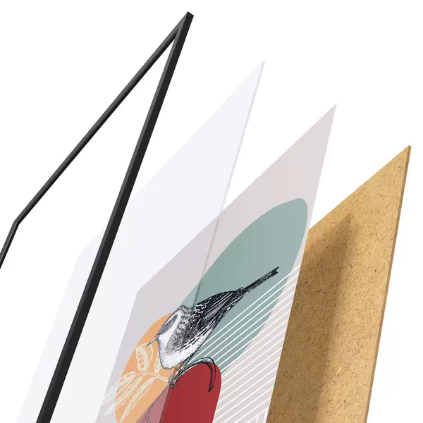 Plakat koosneb raamist, pleksiklaasist, trükitud pildist ja puitlaastplaadist alusplaadist. Tänu tagaküljel olevatele kinnitustele saab plakati kohe seinale riputada.