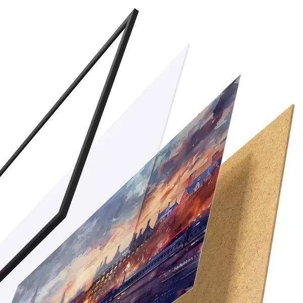 Plakat koosneb raamist, pleksiklaasist, trükitud pildist ja puitlaastplaadist alusplaadist. Tänu tagaküljel olevatele kinnitustele saab plakati kohe seinale riputada.