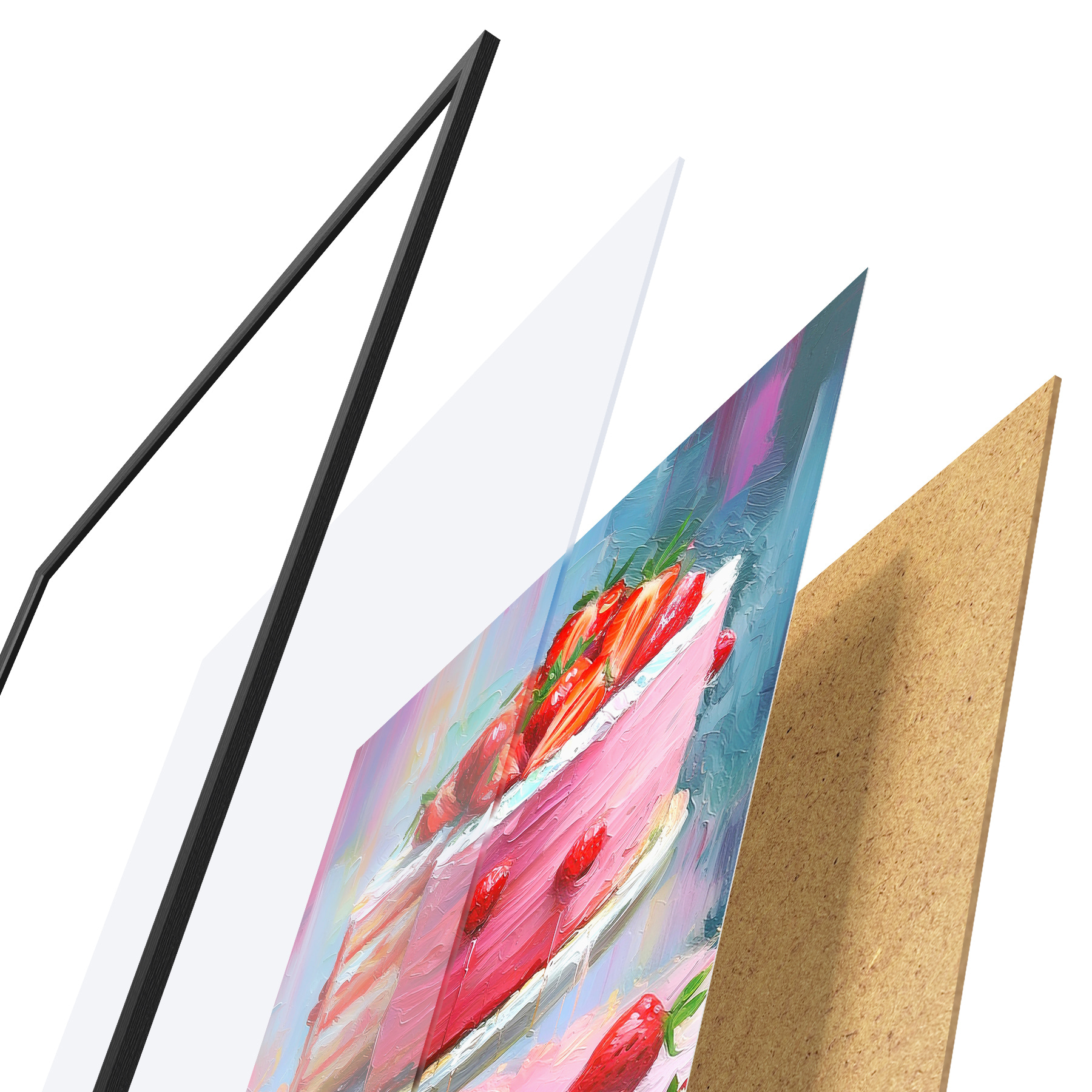 Plakat Maasikatort kreemiga, õlivärv, suured pintslitõmbed, suvised marjad, roosad värvid f38499