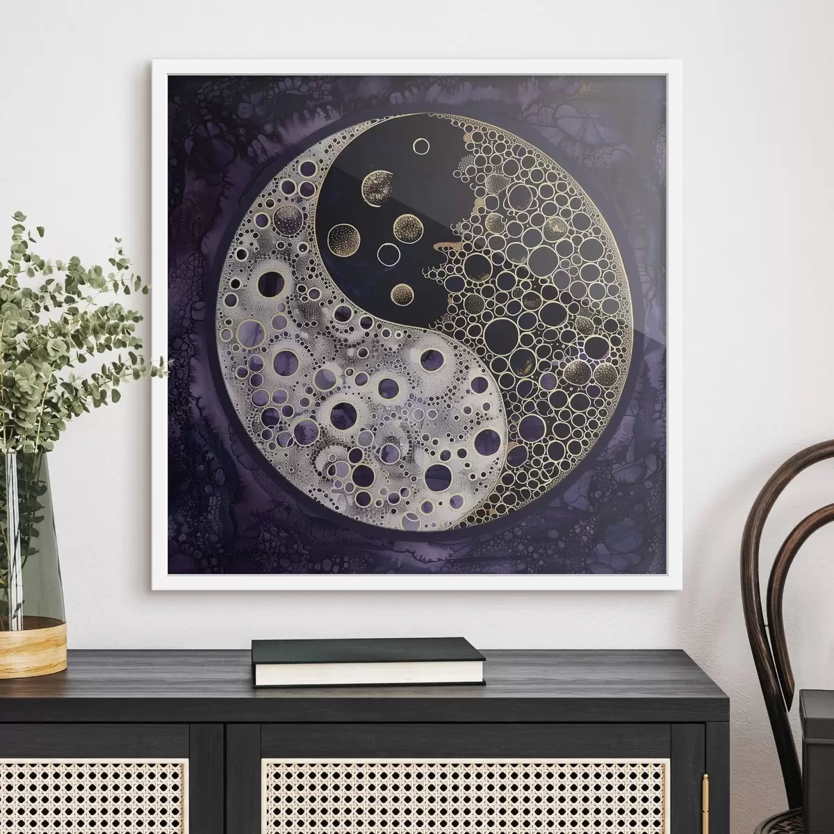 Poster Yin ja yang sümbol lillal taustal Nr f38535