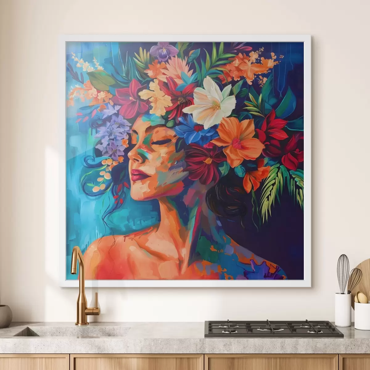 Poster Pilt, millel on kujutatud lilledega naine oma juustes Nr f38574