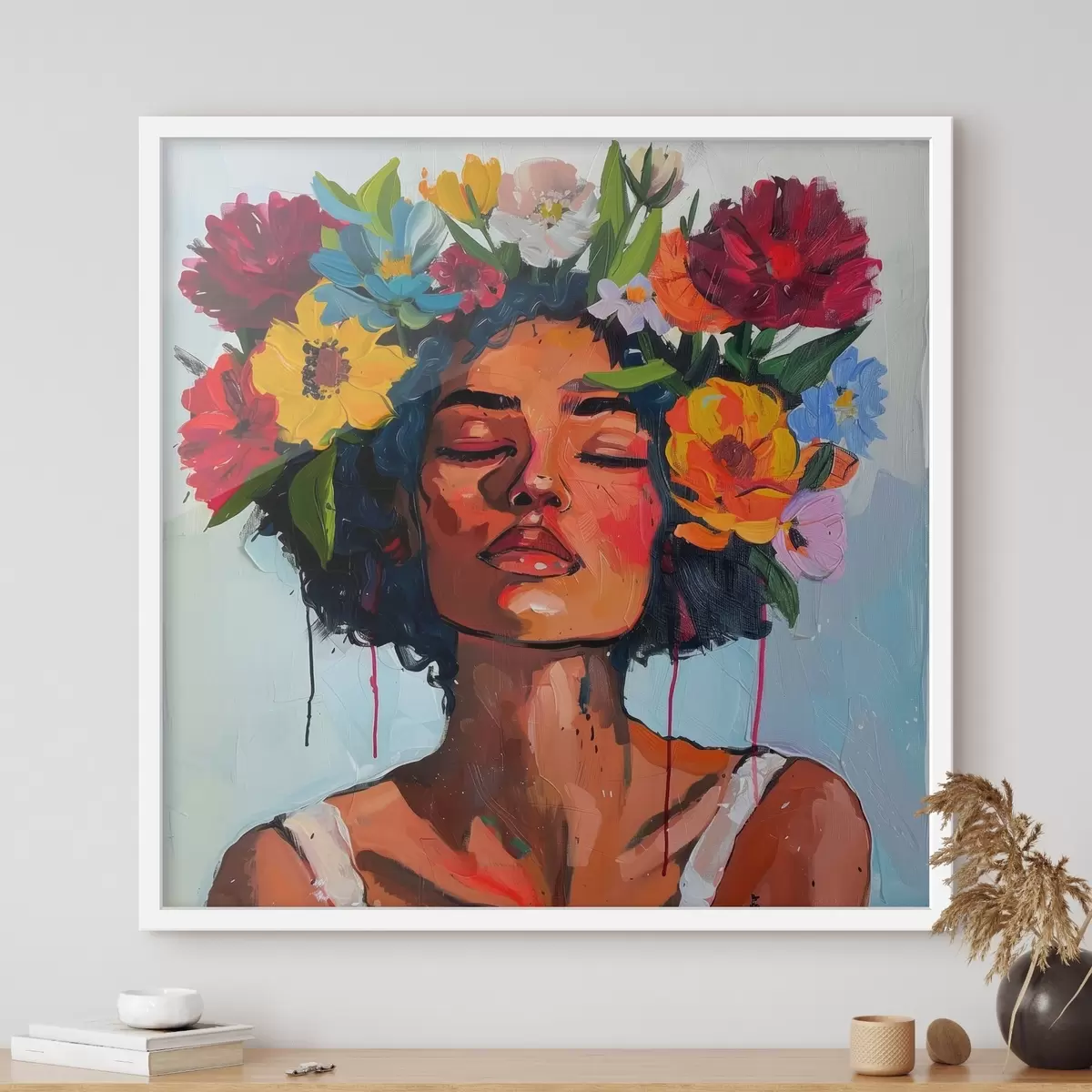 Poster Pilt, millel on kujutatud lilledega naine oma juustes Nr f38575
