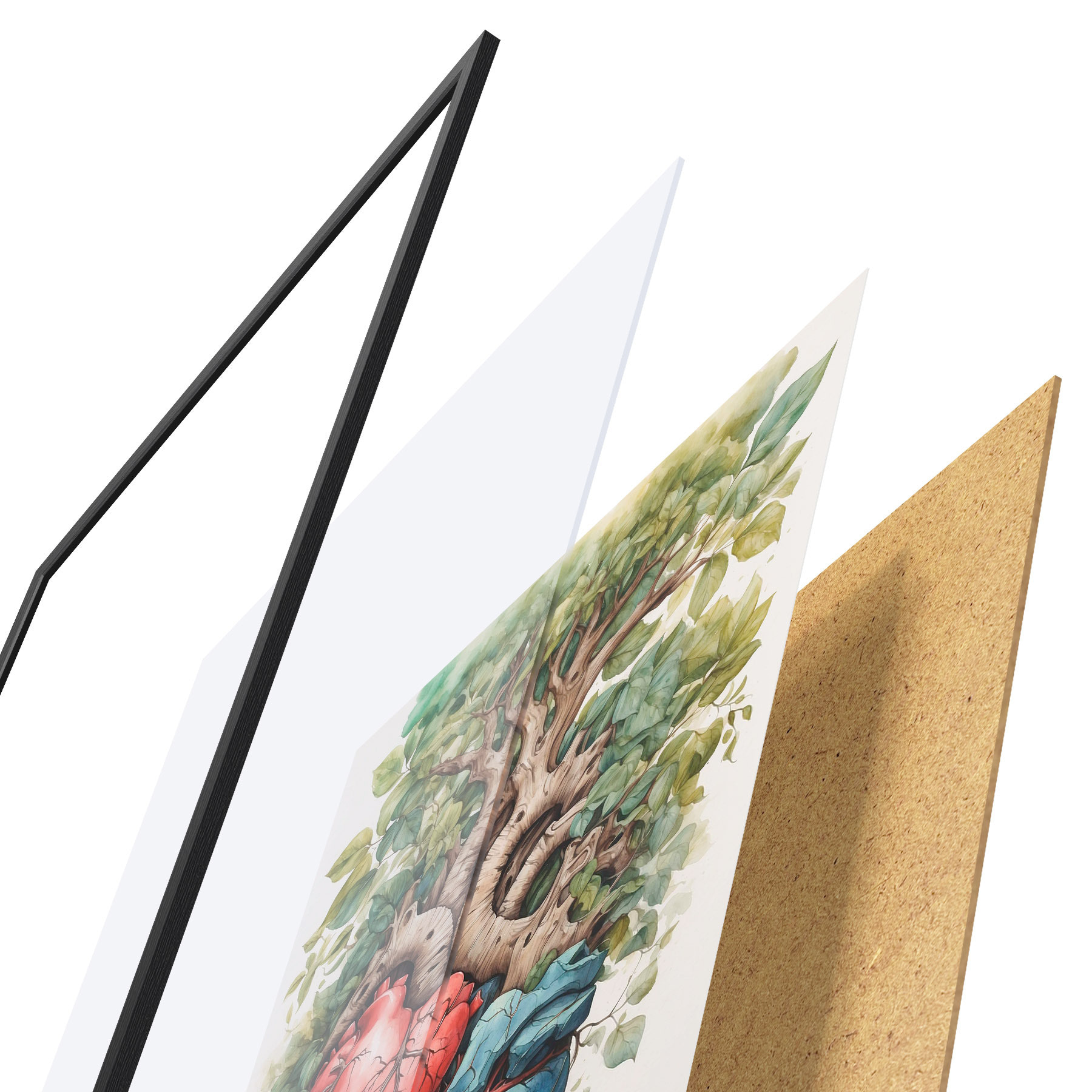 Plakat koosneb raamist, pleksiklaasist, trükitud pildist ja puitlaastplaadist alusplaadist. Tänu tagaküljel olevatele kinnitustele saab plakati kohe seinale riputada.