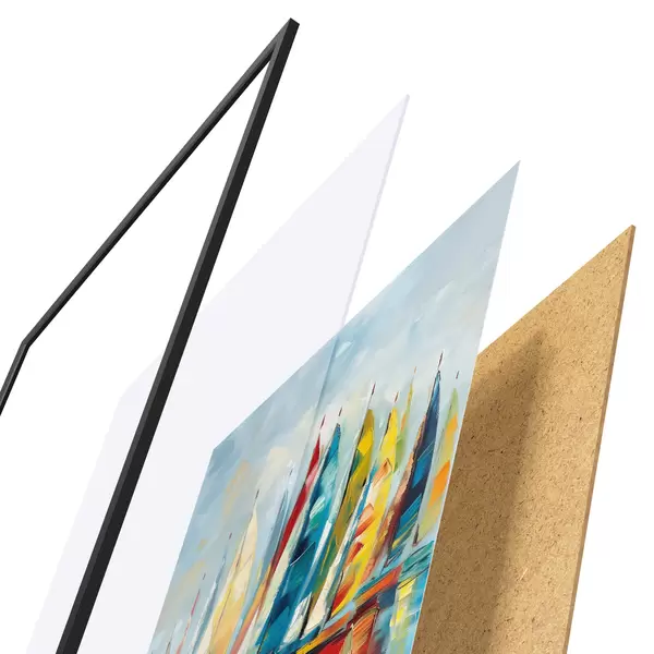 Plakat koosneb raamist, pleksiklaasist, trükitud pildist ja puitlaastplaadist alusplaadist. Tänu tagaküljel olevatele kinnitustele saab plakati kohe seinale riputada.