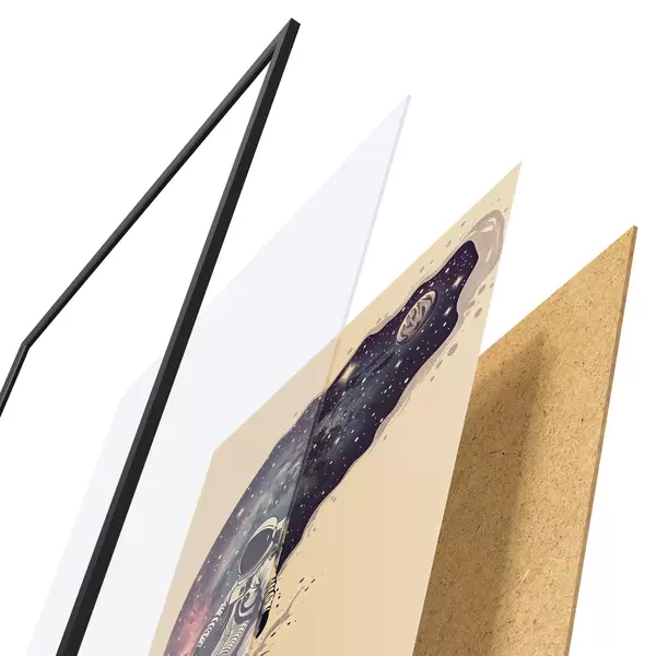 Plakat koosneb raamist, pleksiklaasist, trükitud pildist ja puitlaastplaadist alusplaadist. Tänu tagaküljel olevatele kinnitustele saab plakati kohe seinale riputada.