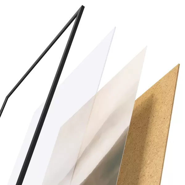 Plakat koosneb raamist, pleksiklaasist, trükitud pildist ja puitlaastplaadist alusplaadist. Tänu tagaküljel olevatele kinnitustele saab plakati kohe seinale riputada.