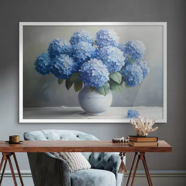 Plakat Ilusad sinised hortensiad vaasis f38696