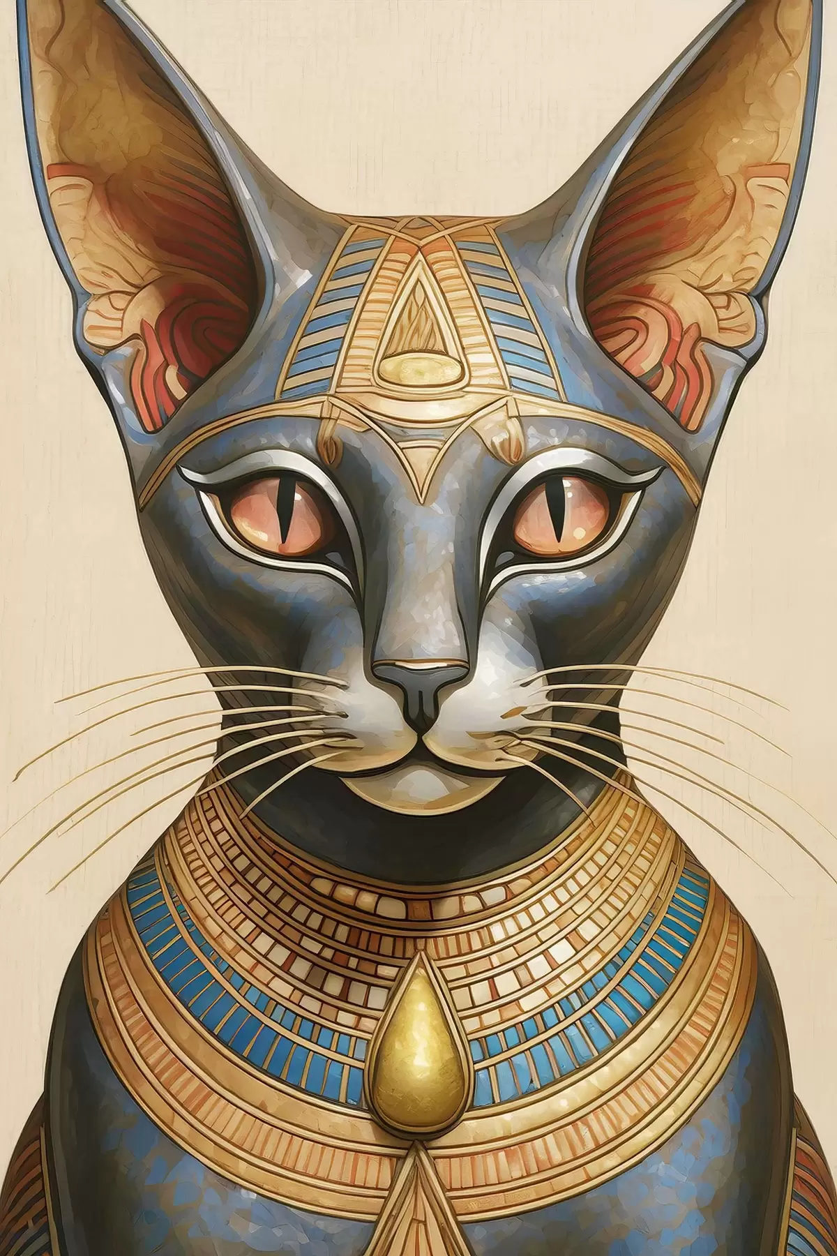 Plakat Majesteetlik Egiptuse kass tseremoniaalses riietuses f38724