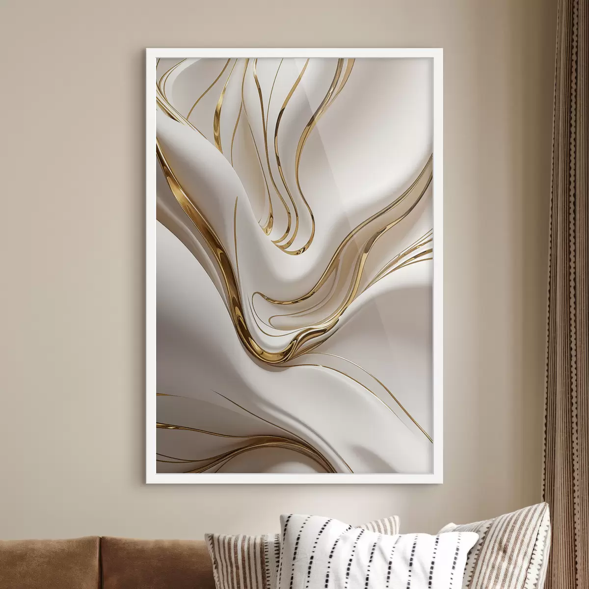 Plakat Voolavad ja valged abstraktsed kujundid, mis meenutavad vedelat või sulametalli, dünaamiline kompositsioon f38767