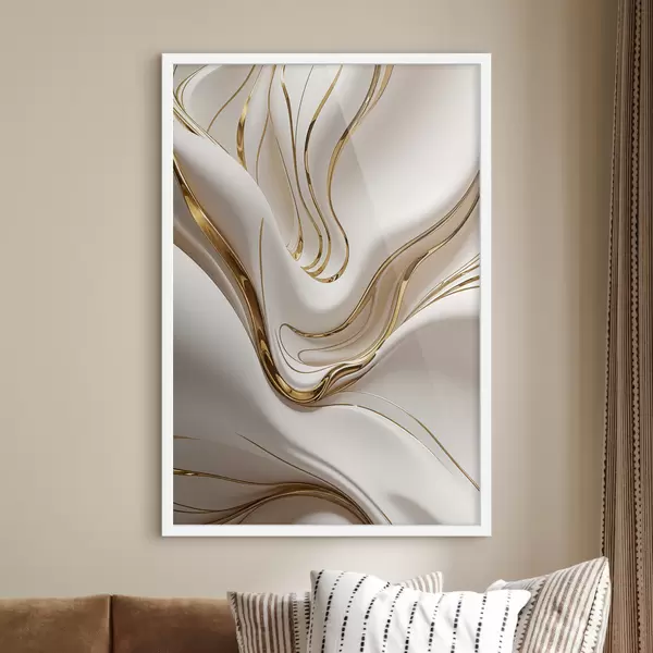 Poster Voolavad ja valged abstraktsed kujundid, mis meenutavad vedelat või sulametalli, dünaamiline kompositsioon Nr f38767