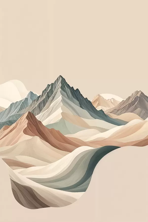 Poster Minimalism mägimaastik kiviste tippude ja beežides mägedega Nr f38770