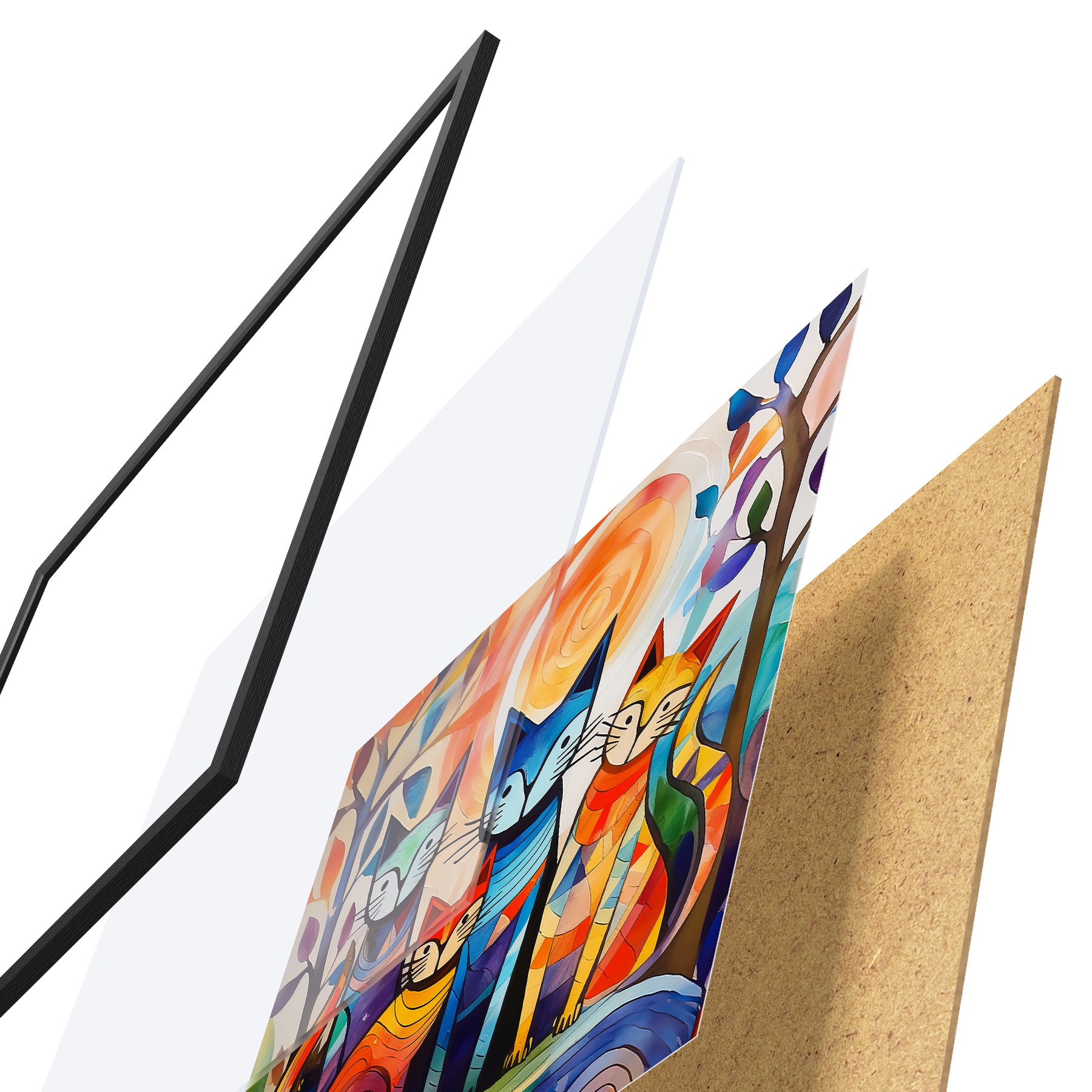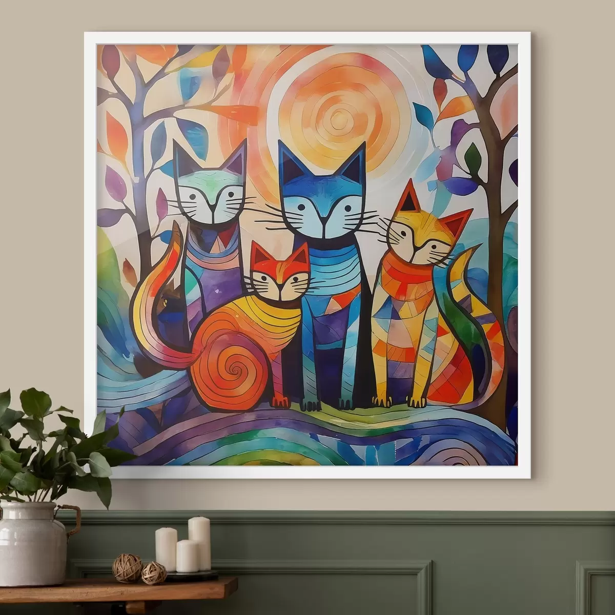 Poster Mitmevärviline abstraktsioon huvitavate kassidega Nr f38815