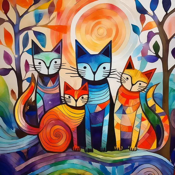 Poster Mitmevärviline abstraktsioon huvitavate kassidega Nr f38815