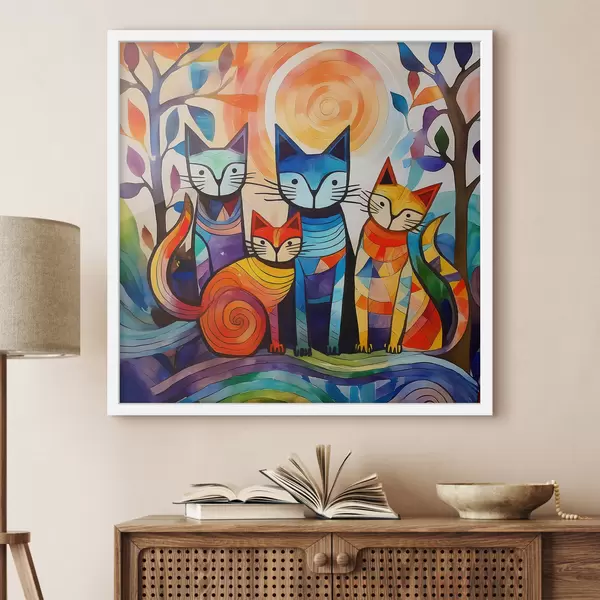 Poster Mitmevärviline abstraktsioon huvitavate kassidega Nr f38815