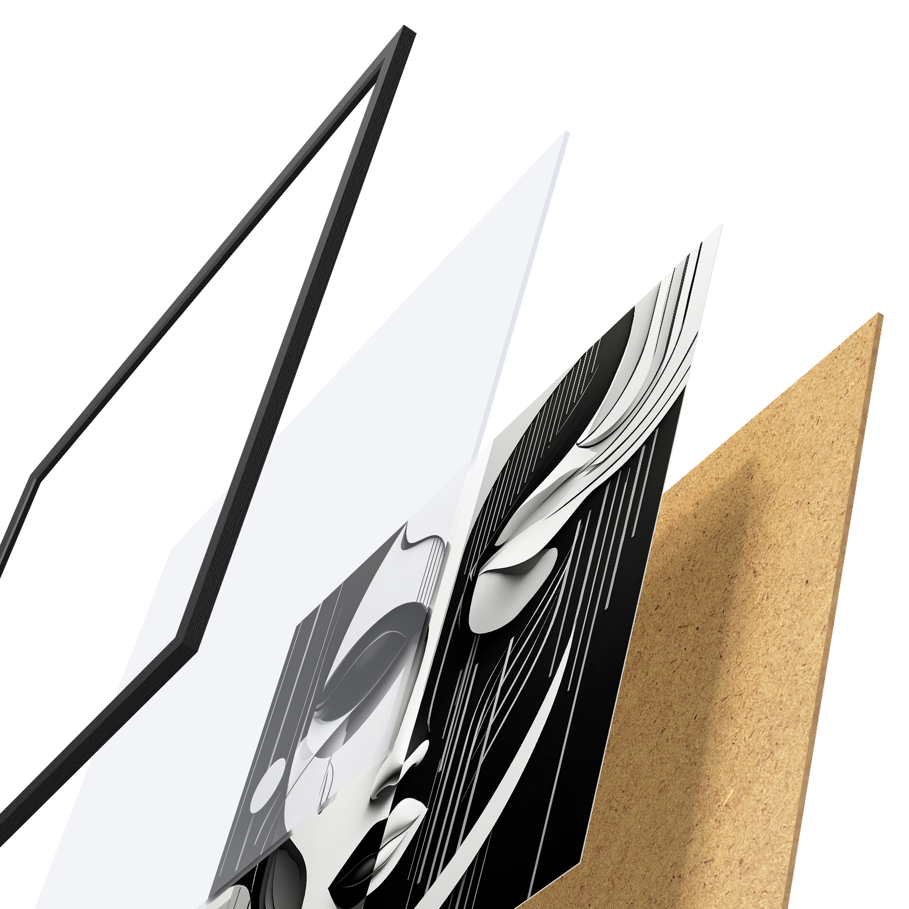 Plakat koosneb raamist, pleksiklaasist, trükitud pildist ja puitlaastplaadist alusplaadist. Tänu tagaküljel olevatele kinnitustele saab plakati kohe seinale riputada.