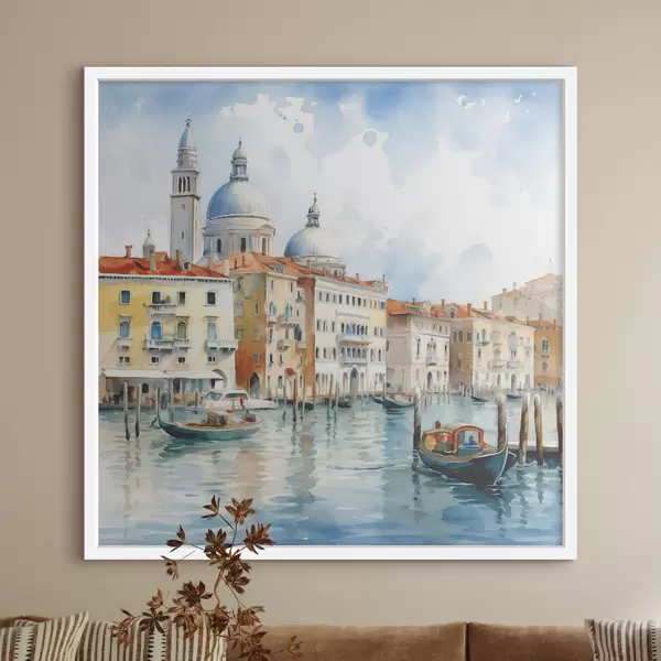 Plakat Akvarell Veneetsia maastik, laht, jõgi, arhitektuur, maastik, paadid, gondel f38908
