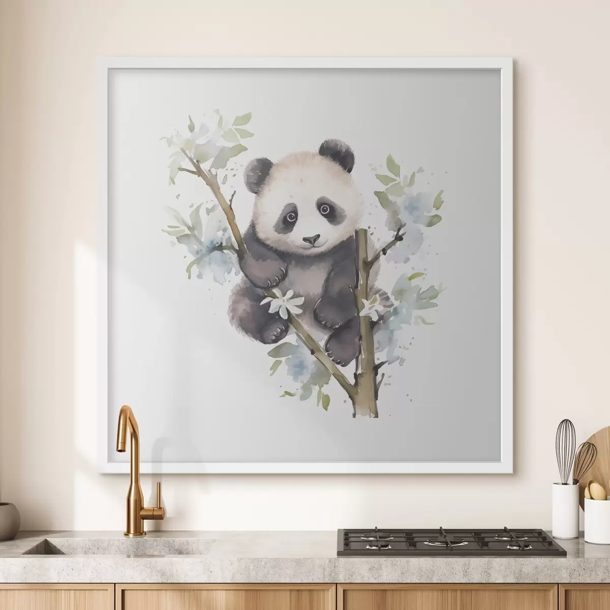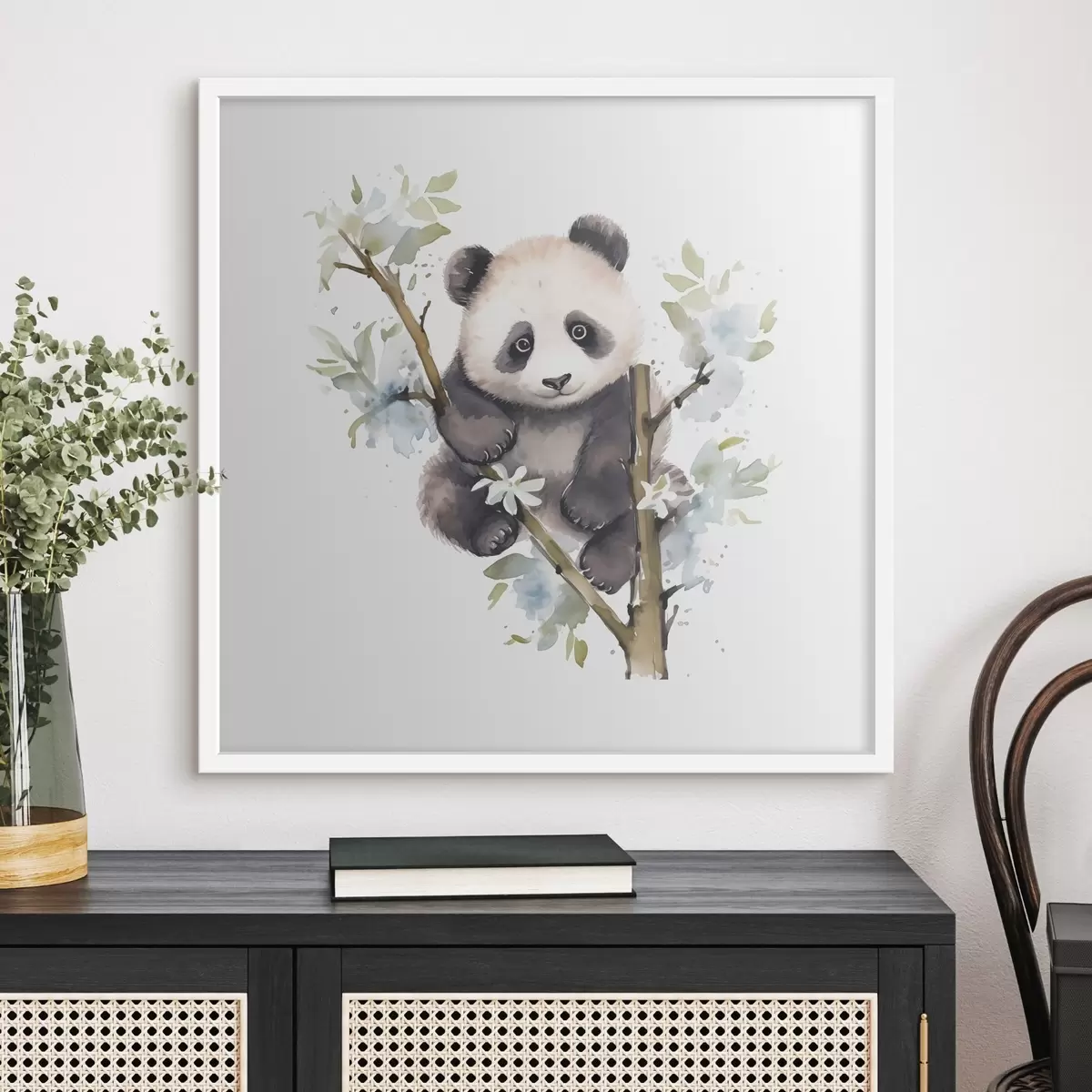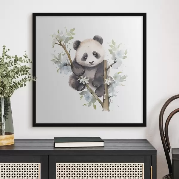 Plakat Mänguline panda naudib kevadisi õisi f38924