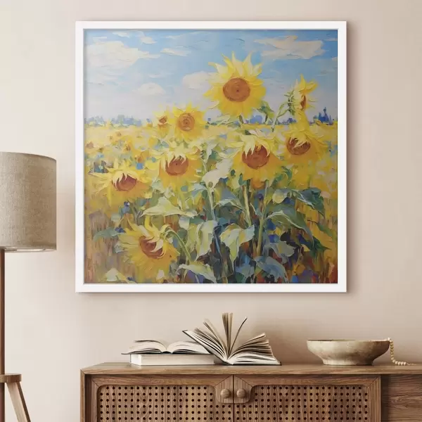 Plakat Päevalillepõllu õlimaal, kollane ja sinine f38953