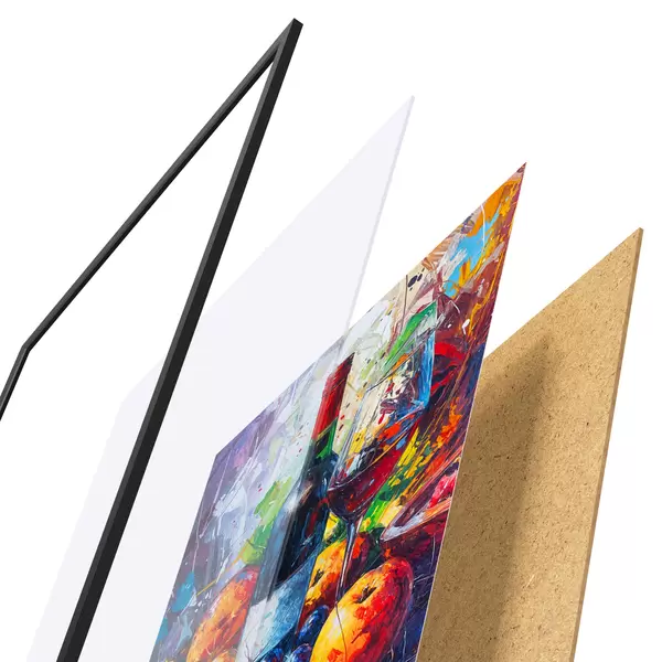 Plakat koosneb raamist, pleksiklaasist, trükitud pildist ja puitlaastplaadist alusplaadist. Tänu tagaküljel olevatele kinnitustele saab plakati kohe seinale riputada.