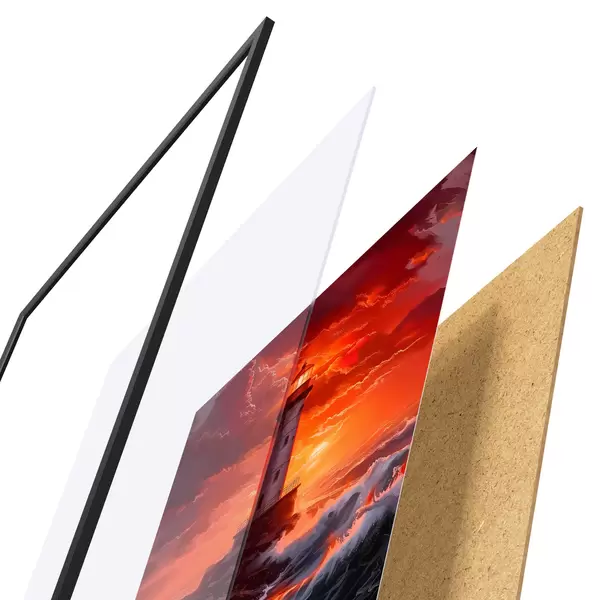 Plakat koosneb raamist, pleksiklaasist, trükitud pildist ja puitlaastplaadist alusplaadist. Tänu tagaküljel olevatele kinnitustele saab plakati kohe seinale riputada.